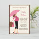 This pink and brown Baby Shower invitation features a cute silhouette of a pregnant woman with an umbrella and is just waiting to be customised with your details. This modern and elegant baby shower invitation is perfect for any mum to be. © BabyStar Design