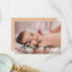 Modern and elegant baby shower thank you card. Fully customisable with your baby's picture, name and other details. Editable colours and customisable dotted background.