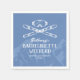 Modern skiing bachelorette party napkins featuring a winter mountain landscape, ski gear, and a text template that is easy to personalise.