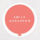 Simple, stylish and fun kids name stickers with your child's name text in modern typography in crisp white and a simple round balloon design in coral pink with a straight gray string in a minimalist Scandinavian 'Scandi' style. Add your child's first and last names to personalize thier items such as clothing, lunch boxes, water bottles etc for school, nursery, kindergarten or montessori.