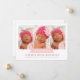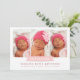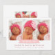 A crisp, clean, modern design sweetly features spaces for three large photos on the front and three smaller photos on the back. With a pretty little banner on the front In soft rosy pink on white, this contemporary look is perfect for introducing your beautiful new baby girl to the world.