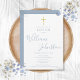 Modern Baptism Christening Gold Cross Dusty Blue Invitation