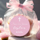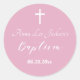 Modern Baptism Christening White Cross Dusty Pink Classic Round Sticker