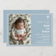 Modern Baptism White Cross Dusty Blue Photo Invitation