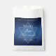 Beautiful deep shades of dark blue create a texture like water on these formal Bar Mitzvah party favour bags. Elegant white minimalist script on a favour bag with your son's name on the subtle Star of David to celebrate your Jewish Jewish son's coming of age.