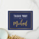 MODERN BAR MITZVAH thank you gold name calligraphy Card