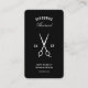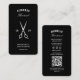 Looking for a customisable business card for your barbershop? Our Elegant Modern Barber Black White Scissors Barbershop design with QR code is the perfect addition to your establishment!