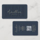 Modern Barber Barbershop Professional Dark Blue business card with QR code