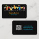 Make a lasting impression with this stylish bartender business card featuring a row of colourful cocktail illustrations on a sleek black background. Perfect for mixologists, event bartenders or bar owners, this modern card combines bold design with practical contact info and a scannable QR code. Customisable name and details ensure your card is as unique and professional as you are. Ideal for networking at events, gigs or private parties.