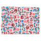 The design is inspired by the modern art bauhaus design, with geometrical pattern in contrasting blues and pinks