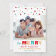 Modern Be Merry Typography Confetti Holiday Photo Card