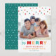 Modern Be Merry Typography Confetti Holiday Photo Card.