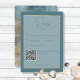 This wedding response card design features a blue and gold abstract beach and water back, with a solid teal front and faux gold glitter framed text area. Modern and unique, it's perfect for a beach or waterside wedding. Created by Simply Farmhouse Press, it's part of the Modern Beach Abstract Teal & Gold Wedding suite.
