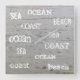 Modern beach driftwood ocean handwritten script square wall clock