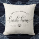 Modern, chic script calligraphy reading BEACH HOUSE alongside your family name in a trendy typography driven design. Great custom home decor pillow for your home away from home. Both romantic and stylish, our neutral ivory cream pillow features a sweet seashell illustration between your location and the year established.
