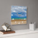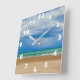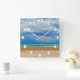 MODERN BEACH ILLUSTRATION WITH WHITE NUMBERS SQUARE WALL CLOCK
