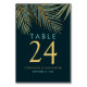 Modern Beach Palm Gold Teal Tropical Wedding Table Number