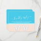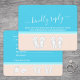 Compliment beach wedding invitations with chic modern RSVP cards. All text is simple to customise or delete as needed. Card includes meal choices, food allergies, song request, and option to respond via website or email. Pastel coral and light turquoise blue design features bright white typography, cute seashells, monogrammed flip flops on an abstract modern minimalist beach, and customisable title that reads "kindly reply." The hand written style script calligraphy resembles sky writing above the ocean. This stylish tropical response card is an elegant way to request guests to RSVP to your special day celebration in paradise.