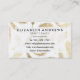 Modern elegant beauty salon and cosmetologist artist business card with faux gold elegant feathers pattern on white background.