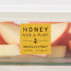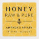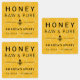 Modern honey labels for your apiary in golden yellow with a faint honeycomb pattern, clean fonts, and a modern bee icon.