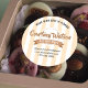Trendy food sticker design featuring handwritten fonts and a neutral beige stripes background. A great way to personalize your cookies, cakes, or catering orders with custom baker stickers. Add your business name and details and make branded labels for your bakery, cake boutique or confectionery business.