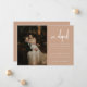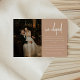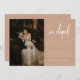 Modern Beige Wedding Photo 'We Eloped' Announcement. Personalise with your favourite wedding photo, your elopement message for family and friends, and bride and groom initials on the back.