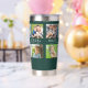 Modern BEST DAD EVER 6 Photos Insulated Tumbler. Create a personalized, custom beverage tumbler for a father featuring 6 pictures, your custom title and/or message in your choice of font styles and colors and background color and is duplicated on both sides. The sample is shown with the title BEST. DAD. EVER. in white classic typography on a green background (make changes in EDIT). Makes an ideal gift for Dad for his birthday, Father's Day or a holiday. ASSISTANCE: For help with design modification or personalization, color change, resizing, transferring the design to another product or you would like coordinating items, contact the designer BEFORE ORDERING via Zazzle Chat or makeitaboutyoustore@gmail.com.