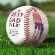 Modern Best Dad Ever Father`s Day Two Photo Collage Baseball. This modern custom and personalised baseball is a perfect gift for a dad or a new dad on a father`s day. The best dad ever two photo template baseball. Personalise it with two photos and names. The background is white and the text is trendy black and red typography. You can change any text on the baseball or erase it.
