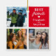 Elegant friendship 2021 christmas ornament featuring a chic white background that can be changed to any color, 3 photos of you and your bestie, the words "best friends", a cute heart, and your names. On the reverse is another 3 pictures for you to personalize.