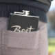 Modern Best Man flask. Contemporary text in brownish grey and white on a black background with wedding date in classic block text at bottom right. The wedding date can be removed by clearing the text field, or changed to personalise with the best man's name or bride and groom initials.