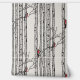 This modern wallpaper features hand-drawn birch trees with red Cardinal birds perched on branches in black ink, with shading done in cross-hatch style, against an elegant ivory background.