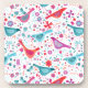 Modern and contemporary watercolor birds and flowers pattern in vibrant teal green, magenta pink and red on a white background. Original art by Nic Squirrell.