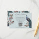 This Modern Bird Website QR Code Enclosure Card features hand-drawn blue and teal peacock bird and magnolia flowers and an elegant pattern on the back. All text is editable.