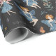 This delightful wrapping paper is the perfect blend of whimsy and sophistication, ideal for celebrating birthdays with a touch of enchantment. The design features an intricate pattern showcasing fairies in delicate, watercolor-style illustrations, set against a modern black background. The fairies are rendered in shades of blue, creating a charming contrast that catches the eye and adds a touch of magic to any gift presentation. Interspersed among the fairies are elegant floral elements that bring an additional layer of detail and beauty.
