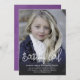 Stylish and modern calligraphy script photo birthday invitation. Add your daughter's photo and party details to this easy to personalise birthday invitation template. The reverse side of this any age birthday invitation is a gorgeous purple watercolor wash.