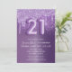Elegant, girly invitation featuring purple glitter and drips on a purple metallic background. Also featuring faux foil Balloon typography. All elements are editable. Easy to customise with your unique details.