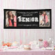 Black graduation party 2-photo banner for the Class of 2025. Personalise with the name of the graduate and their school name. The black background colour is customisable, as well, so match your school colours or photos. Perfect for high school or college graduation. Contact me for assistance with your customisations or to request additional matching or coordinating Zazzle products for your event.
