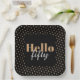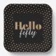 Modern Black 50th Birthday Hello Fifty Party Paper Plate