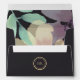 Modern, elegant, chic, watercolor abstract floral yellow, purple and black 5x7 envelope, with faux gold monogram initials and return address.