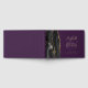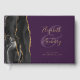 This elegant wedding guest book features a black watercolor agate design trimmed with faux gold glitter. Easily customise the gold-coloured text on a purple background, with the names of the bride and groom in whimsical handwriting calligraphy over a large ampersand. Add additional text of your choice to the front and spine.
