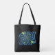A pretty bag featuring a modern black and blue fractal pattern. If you look closely you will see a flower like design with leaves.