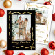 Modern Black and Gold Bow 2 Photo Merry Christmas Holiday Card
