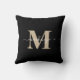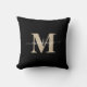 Modern Black and Gold Elegant Monogram Name Cushion