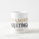 Holiday Coffee Mug | Modern Black and Gold Minimal Holiday Baubles - three striped black and gold Christmas ornaments hang at varying levels on either side of the text ' Season"s Greetings ' - in a font to make this an appealing gift for family friends or business - customise with your name easily - this is part of the Modern Black and Gold Minimal Holiday Baubles Collection