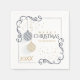 Christmas Wedding Party Napkin | Modern Black and Gold Minimal Holiday Baubles - three black and gold striped Christmas ornaments hang at varying levels - paired with gold corner scrolling and contemporary font ' Merry Christmas ' make this appeal for any Holiday Party - customise with your information easily - this is part of the Modern Black and Gold Minimal Holiday Baubles Collection