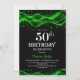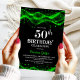 Invite your friends and loved ones to your 50th birthday with this modern black and green birthday party invitation. The customisable text area in this invitation template allows you to effortlessly include all the necessary details for your special birthday celebration, including the date, time, venue, and RSVP information. A variety of paper types and corner styles are available for your unique invitations, along with the option to download if you prefer a digital format.
