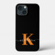 Modern Black And Orange Monogram iPhone 13 Mini Case