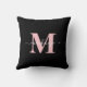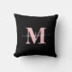Modern Pink And Black Elegant Monogram Name Throw Pillow