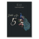 These Modern Black and Teal Green Peacock Wedding Table Numbers feature a hand-drawn blue and teal blue peacock perched on Magnolia branches in full bloom in black ink. Personalise with bride and grooms' monogram, names and table number by clicking on "Personalise this template" on the product page.