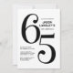 Invite your friends and loved ones with this modern black and white 65th birthday party invitation. The customisable text area in this invitation template allows you to effortlessly include all the necessary details for your special birthday celebration, including the date, time, venue, and RSVP information. A variety of paper types and corner styles are available for your unique invitations, along with the option to download if you prefer a digital format.